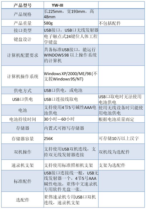 亞偉中文速錄機(jī)三型產(chǎn)品使用說明書